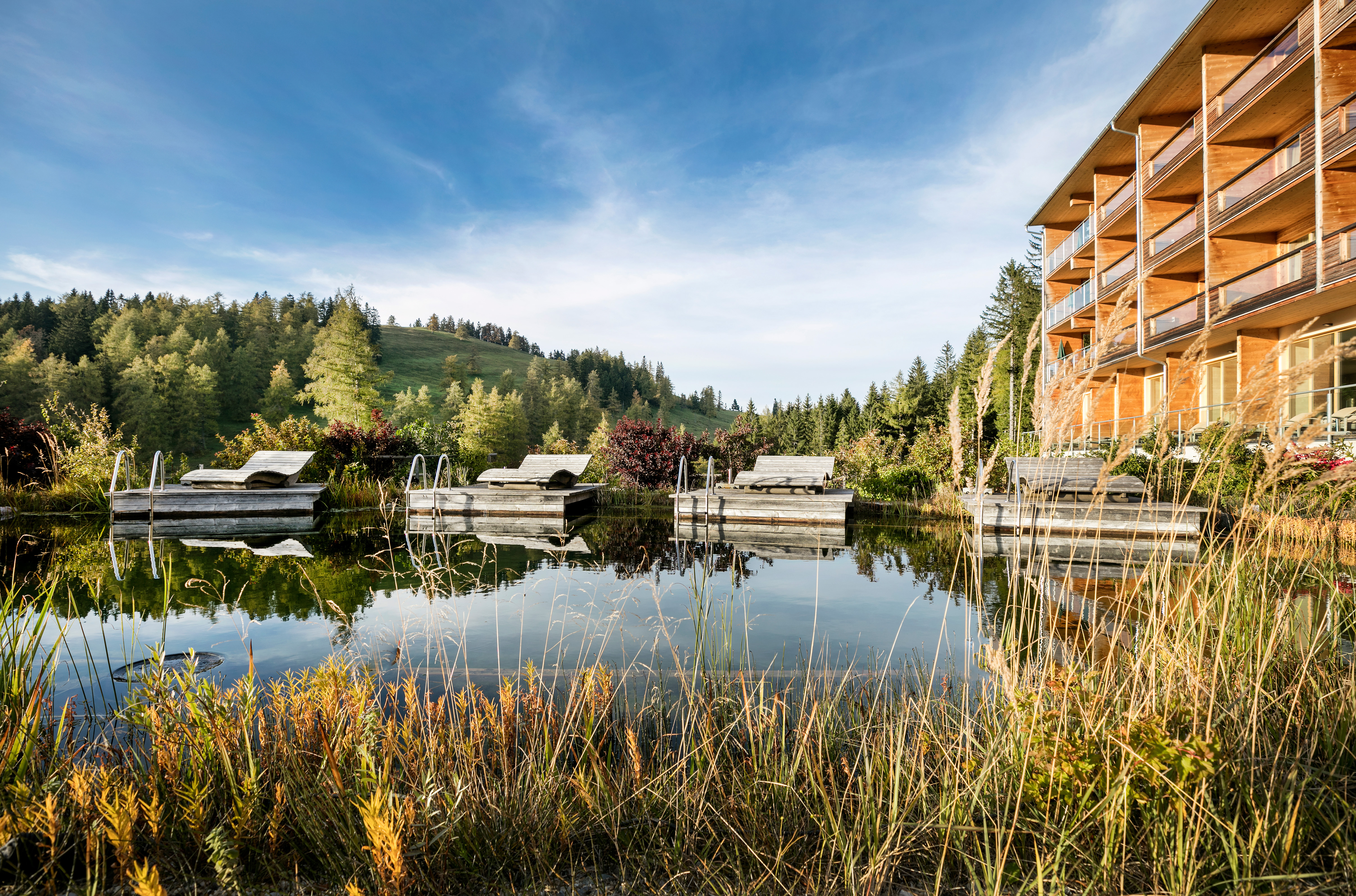 Die Alm ist eine Quelle der Kraft. Frische Luft, gesunde, saftige Wiesen, kristallklares Wasser und ein Weitblick über die unberührte Landschaft des Almenlands – all das gibt eine Kraft, wie es nur die unverfälschte Natur vermag. Das Hotel auf der Teichalm in der Steiermark ist ein Ort, der alle Sinne berührt, an dem Sie Ihrer Gesundheit etwas Gutes tun und eine wohltuende Auszeit der Frische und Regeneration nehmen können. Nehmen Sie sich Zeit. Genießen Sie die Ruhe. Ein Genuss auf höherer Ebene.