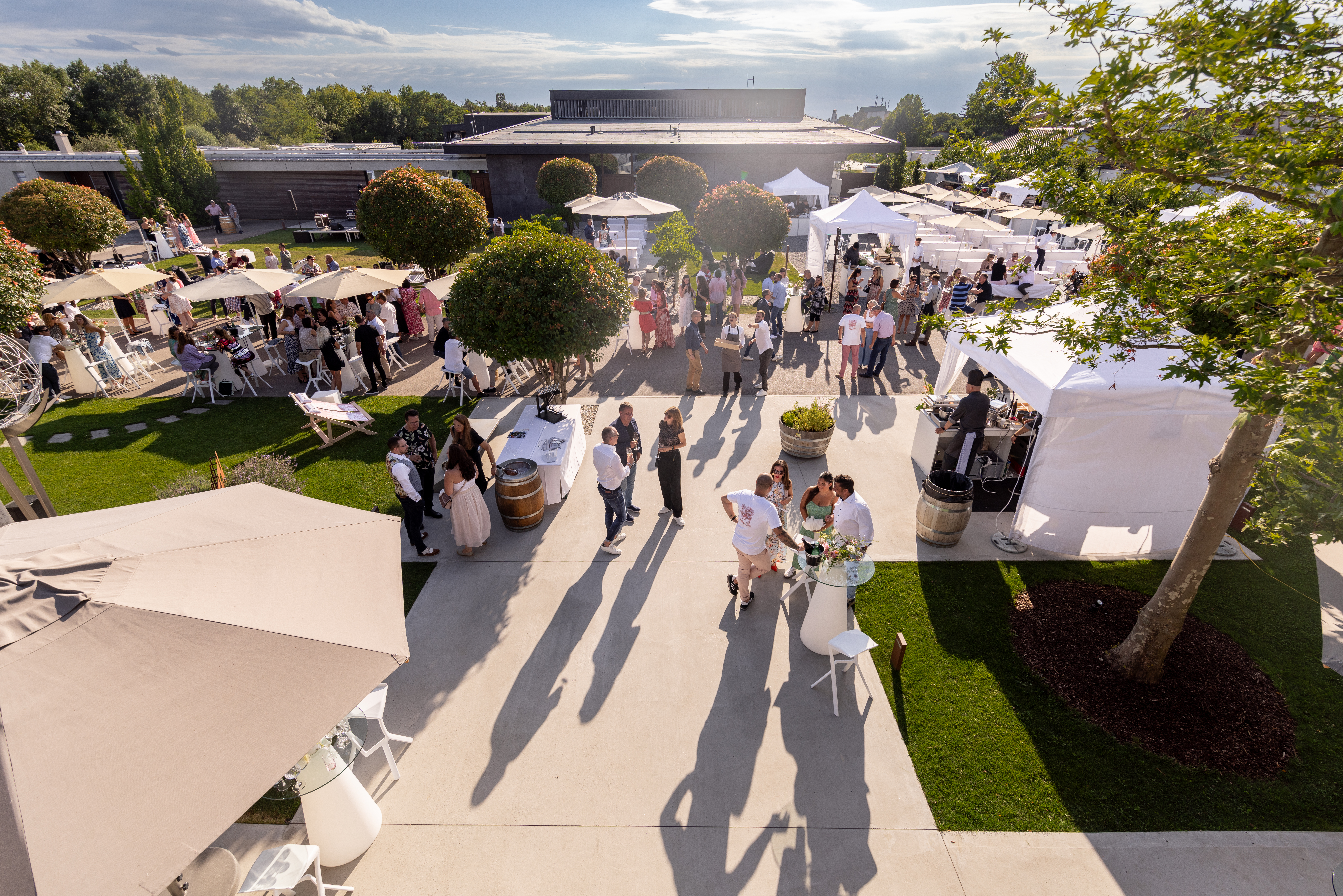 Darüber hinaus hat sich das Weingut auch als Eventlocation einen Namen gemacht. Veranstaltungen wie das „Hoffest“, „Unplugged Music & Wine“ oder die legendäre „Kitchen Party“ zählen zu den Highlights im Veranstaltungskalender und ziehen jedes Jahr zahlreiche Gäste aus der Region und darüber hinaus an. Ergänzt wird das Angebot durch Veranstaltungen im Garten, kulinarische Formate wie der „Wein.Garten.Brunch“ sowie individuell gestaltbare Events in der Eventhalle des Weinguts.