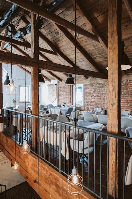 The unique restaurant represents itself threw its interior made out of brick and wood and an old powerhouse from 1934.