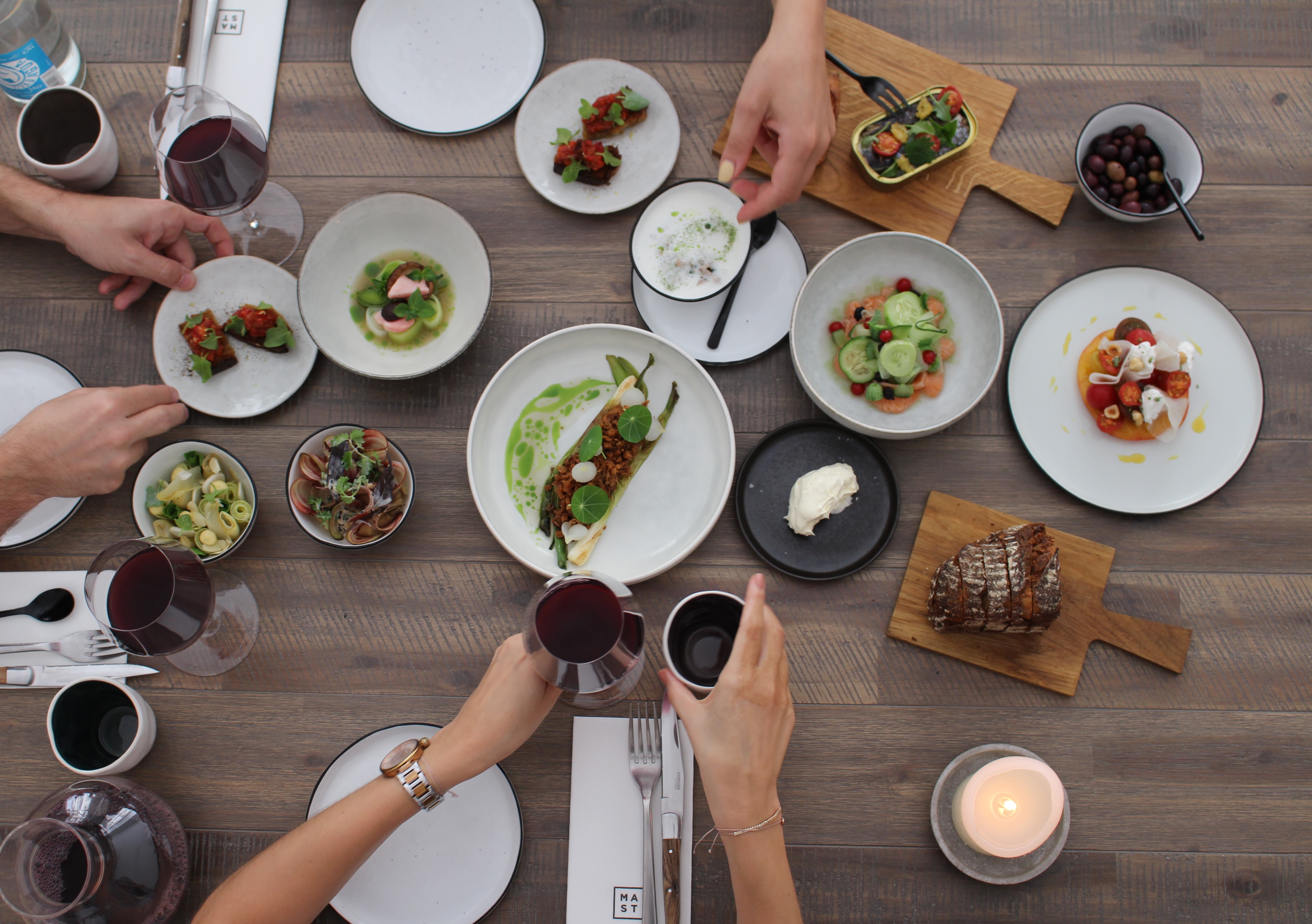 MAST ist das Weinbistro von Matthias Pitra und Steve Breitzke im 9. Wiener Bezirk. Im Mittelpunkt stehen biologische und natürliche Weine, ergänzt durch eine saisonale, regionale Küche. In enger Zusammenarbeit mit kleinen österreichischen Produzent:innen entstehen Gerichte mit klarer Handschrift, hoher Produktqualität und starkem Fokus auf Nachhaltigkeit.